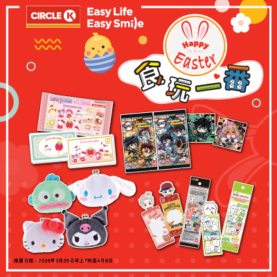 喺今個復活節,嚟 Circle K 一齊參加「Easter Hunt」!迪士尼、SANRIO、貓咪大戰爭等人氣角色集結,零食×精品一次過帶走!