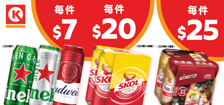 喜力啤酒、喜力星銀以及百威500毫升只需 $7/件! 獅威啤酒 500 毫升 4 罐裝只需 $20/件! 生力啤酒 330 毫升 4 罐裝只需 $25/件!