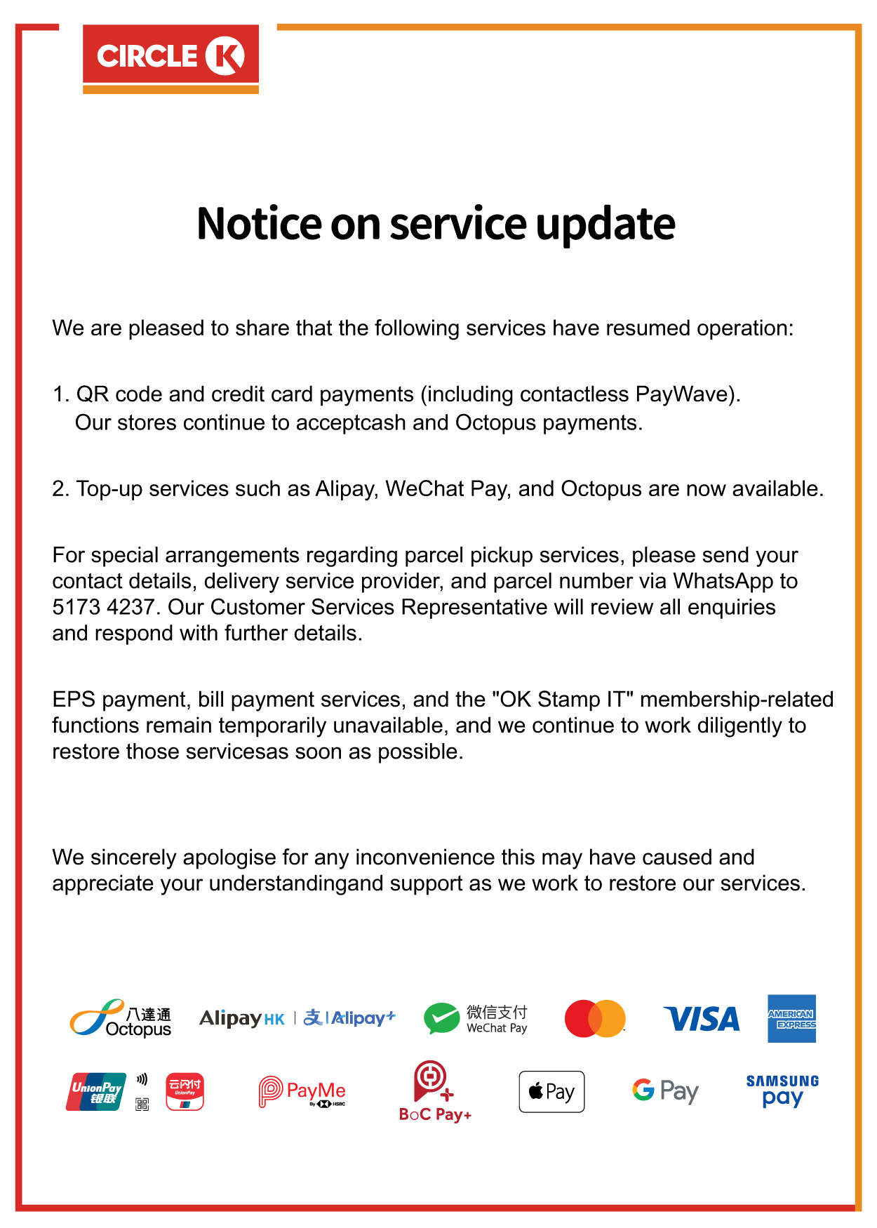 Notice on service update