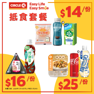 Buy Circle K packaged bread/cake or fresh bread/cake, and simply add: +$3 to get a selected Vita product (250ml carton pack) or +$5 to get a Nestlé Coffee 250ml (various types)