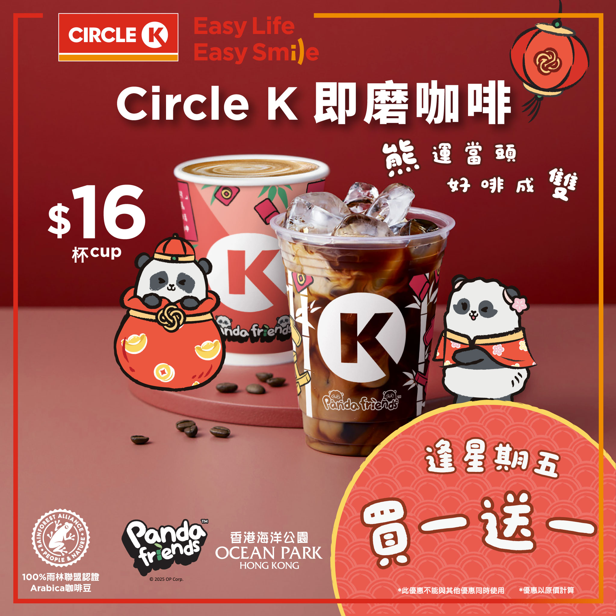 Circle K and Hong Kong Ocean Park's Panda Friends have teamed up for a new initiative! Panda Friends are dressed in Lunar New Year outfits to wish everyone an early Happy New Year! Enjoy a Circle K freshly brewed coffee, and may good fortune be with you, double the good coffee!