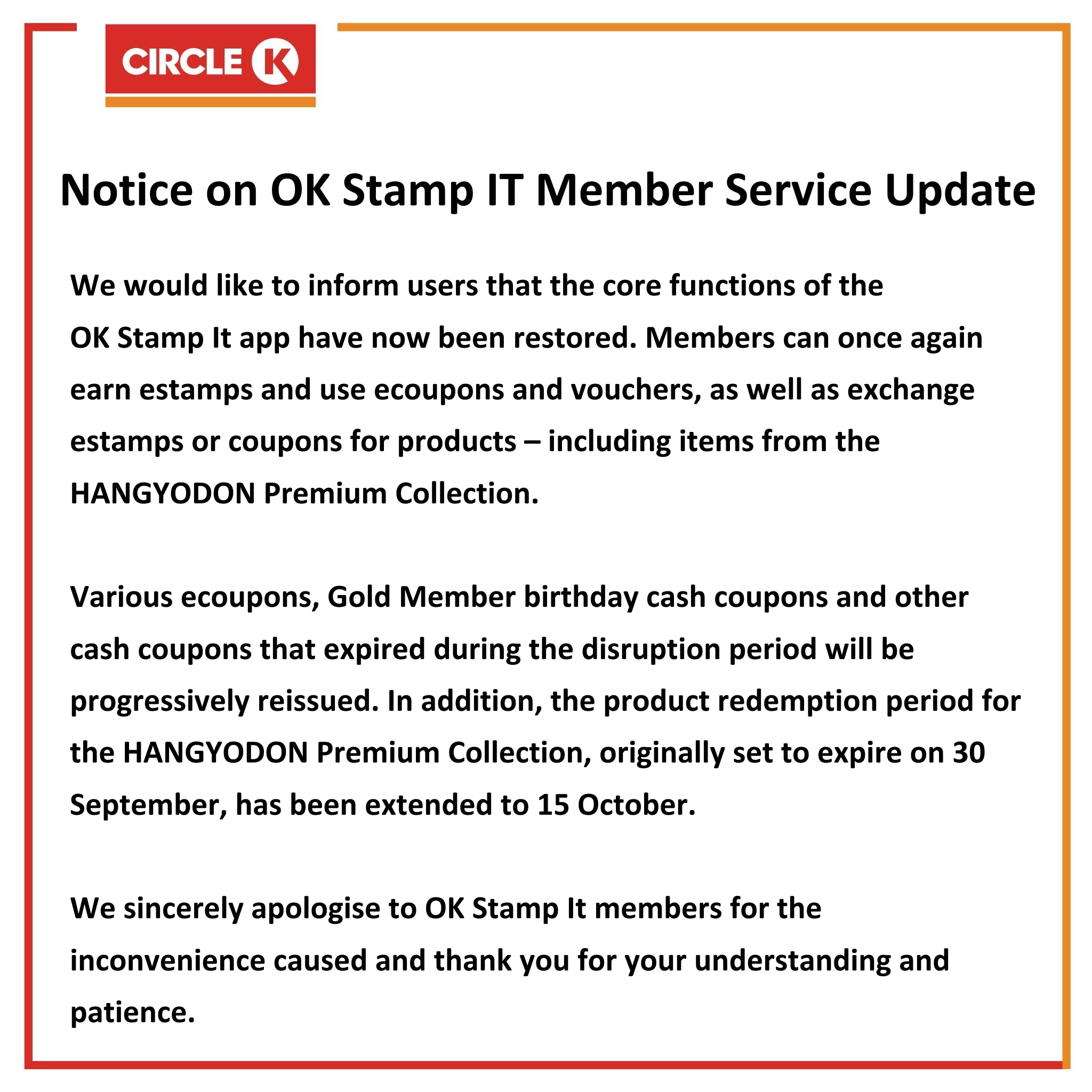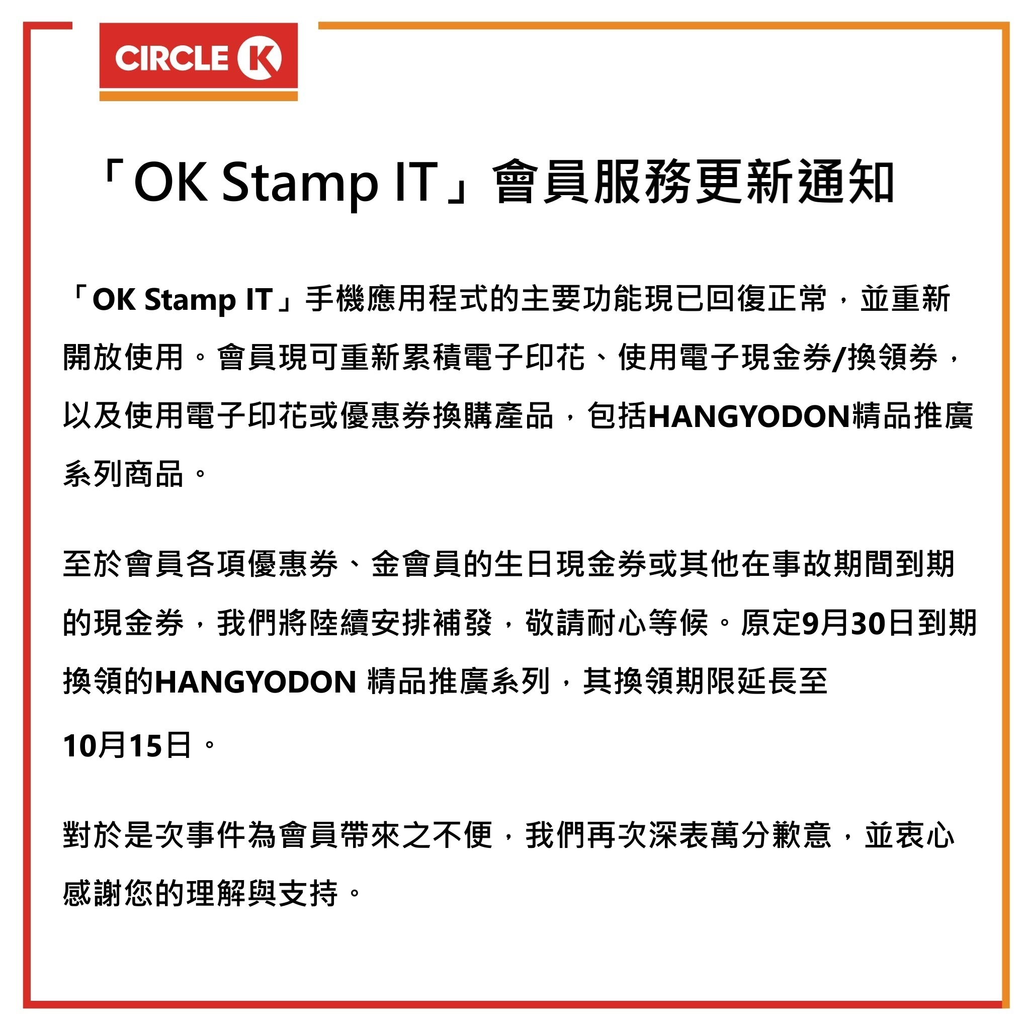 「OK Stamp IT」會員服務更新通知 . 10月5日